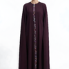 A classic purple kaftan dress crafted from soft-touch Arabian crepe. Designed with a round neckline, the center front adorned with an elegant attachment, this long-sleeve silhouette flows beautifully for a refined and modest look. Perfect for both formal and festive occasions.