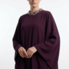 The Eden Long Sleeve Caftan Dress is a refined expression of contemporary modest couture, crafted from Matte Luxe Italian Crêpe, a fabrication revered for its soft structure, fluid drape, and sophisticated matte finish. Designed in a loose caftan silhouette, the dress falls effortlessly along the frame, offering graceful movement while preserving elevated modest coverage. A statement embellishment cascades across the round neckline, forming an ornamental frame that illuminates the upper bodice with couture brilliance. Long sleeves balance the relaxed structure with poised elegance, enhancing the garment’s timeless appeal. Available in Salmon Pink and Dark Purple, Eden transitions seamlessly across formal gatherings, festive celebrations, and Ramadan occasions, embodying Demure’s signature fusion of artisanal detailing and global sophistication within the SS 2026 Limited Edition collection.