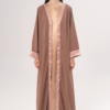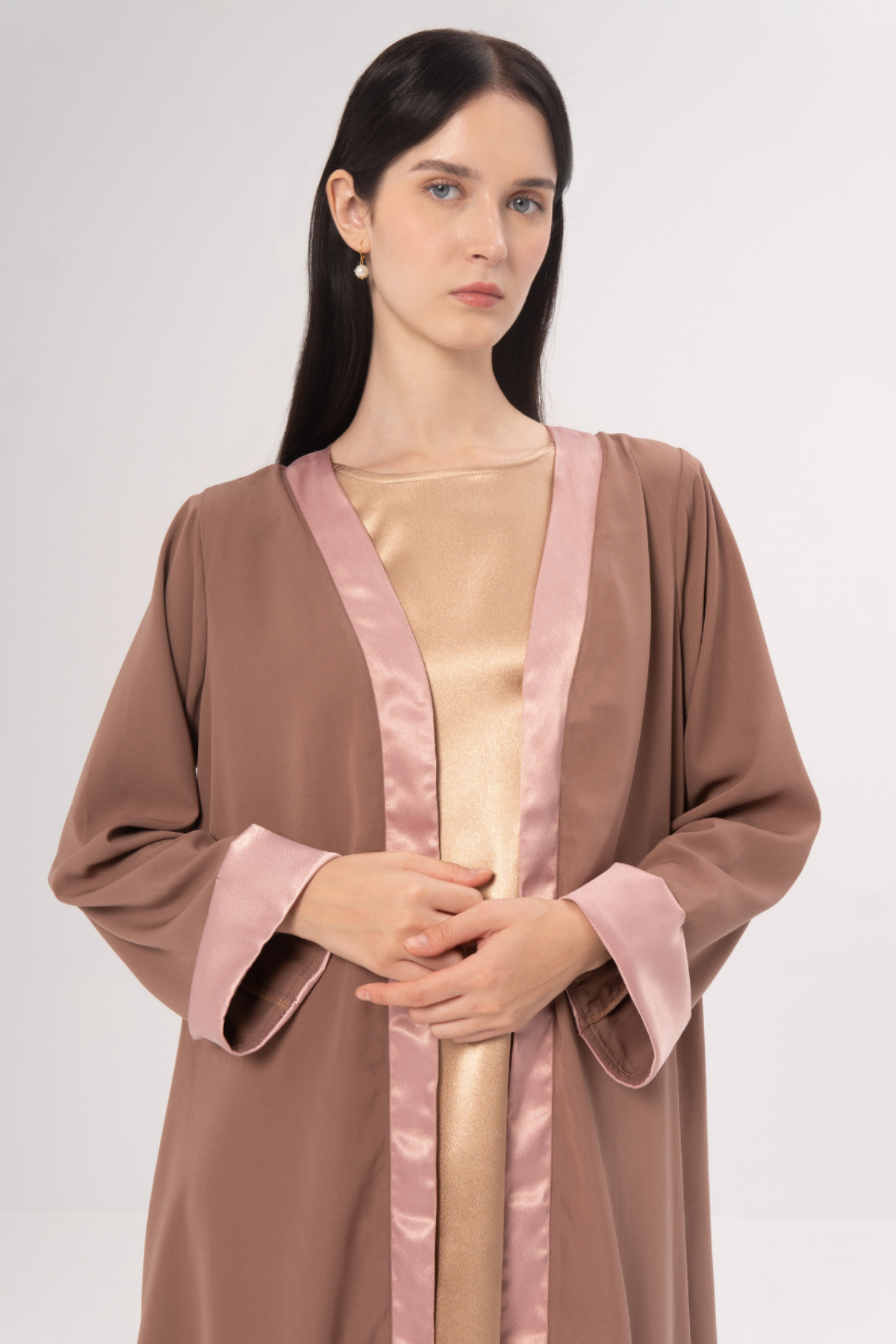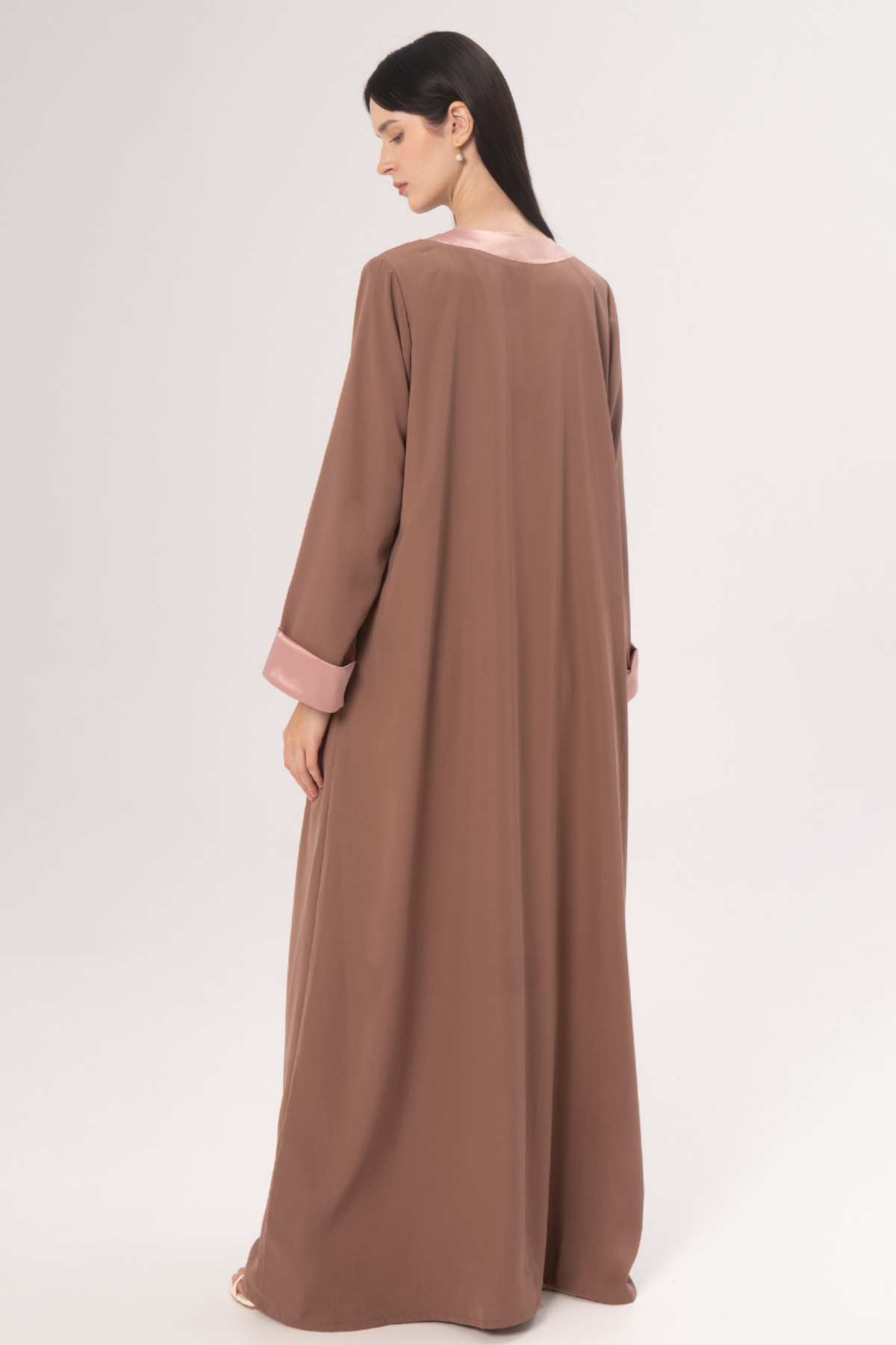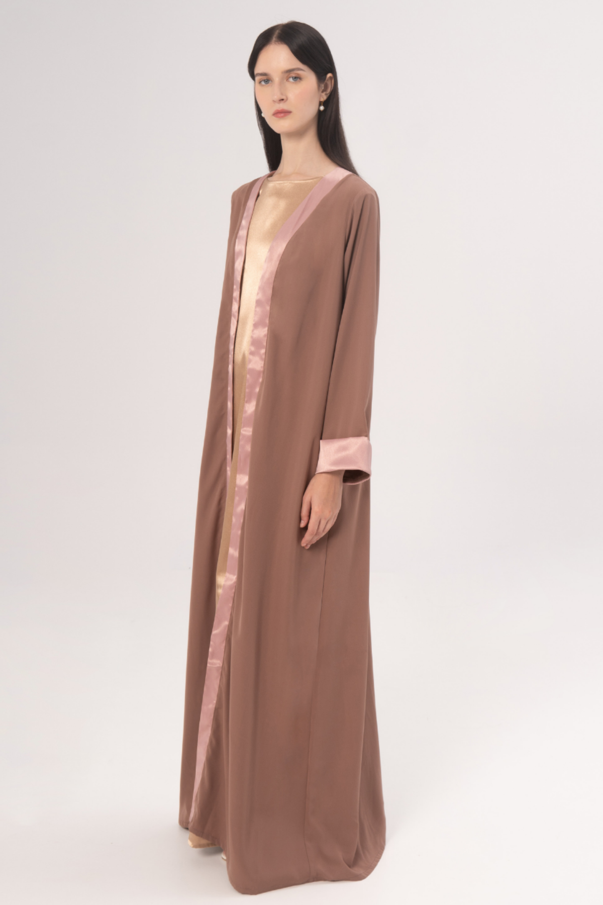 The Zada Open Abaya in Coffee presents a modern interpretation of a timeless silhouette