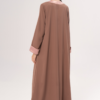The Zada Open Abaya in Coffee presents a modern interpretation of a timeless silhouette. Defined by its flowing structure and soft crepe texture, this piece is elevated through contemporary colorblock cuff detailing and subtle neckline accents. The warm coffee tone enhances its understated sophistication, making it suitable for both everyday elegance and elevated occasions. Designed to deliver comfort alongside refined style, the Zada Open Abaya offers a seamless balance of tradition and modern design.