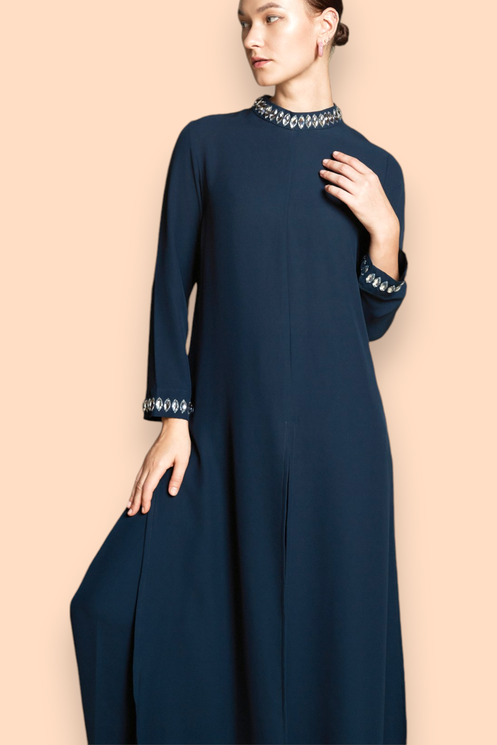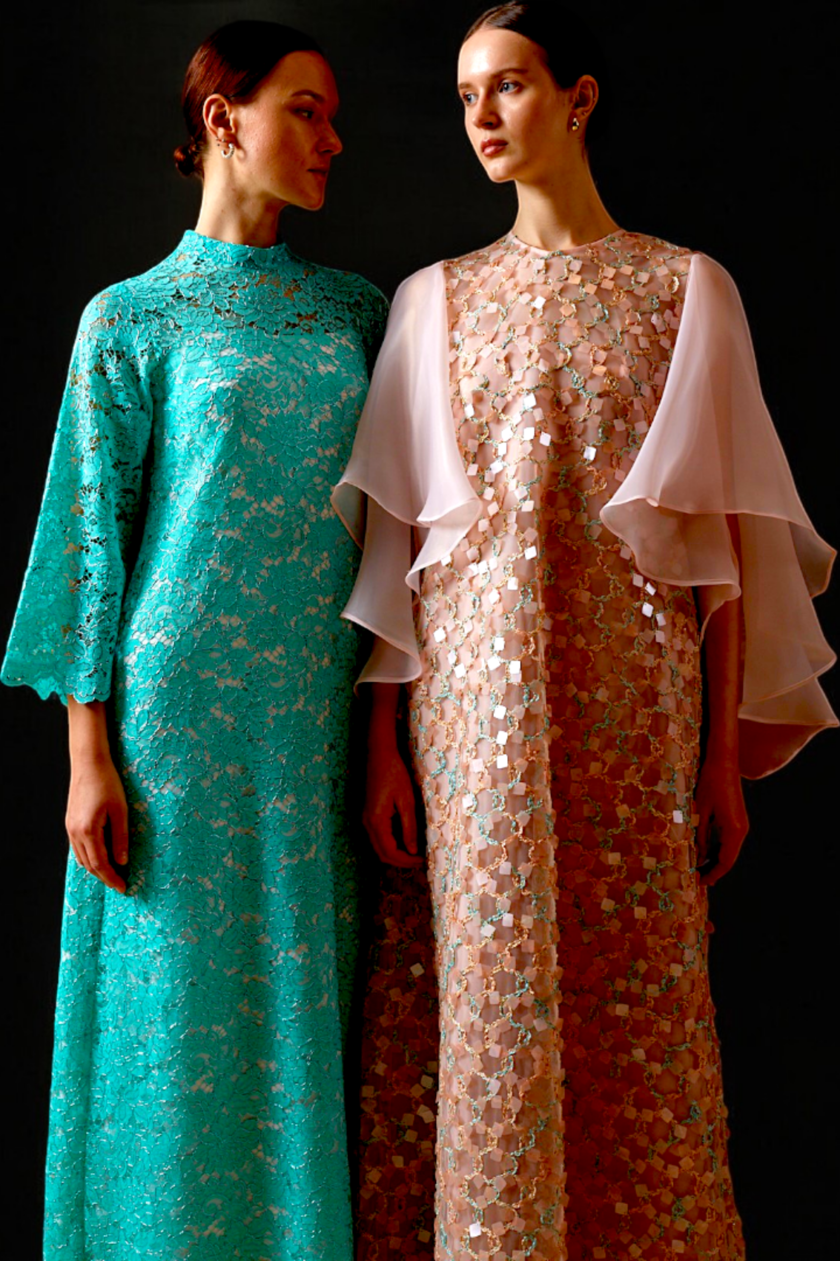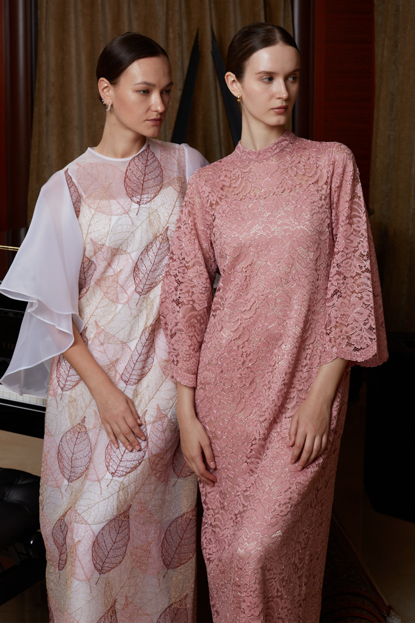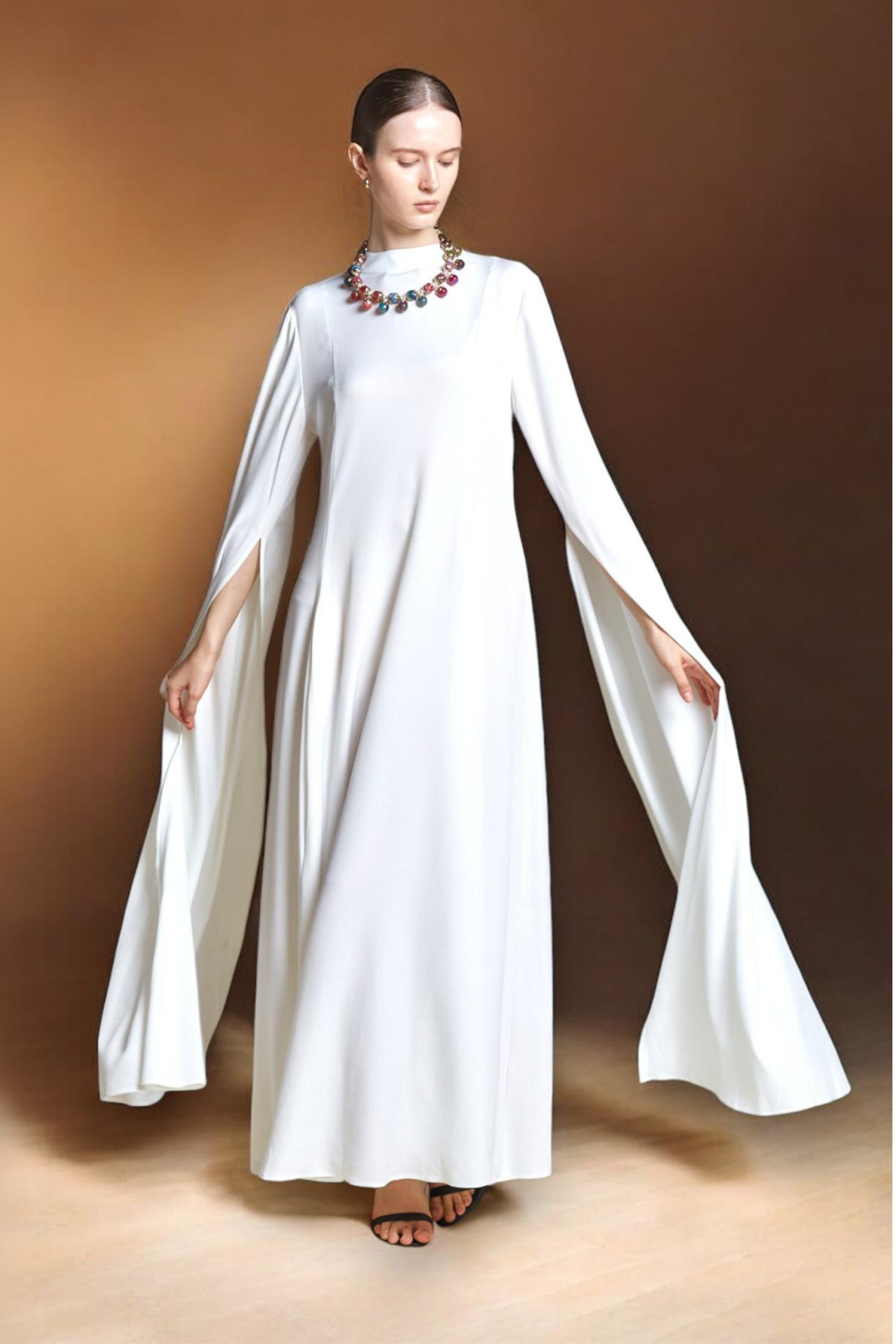 Refined silhouettes for high-society occasions. Discover our exclusive collection of sculptural evening dresses and elegant abayas.