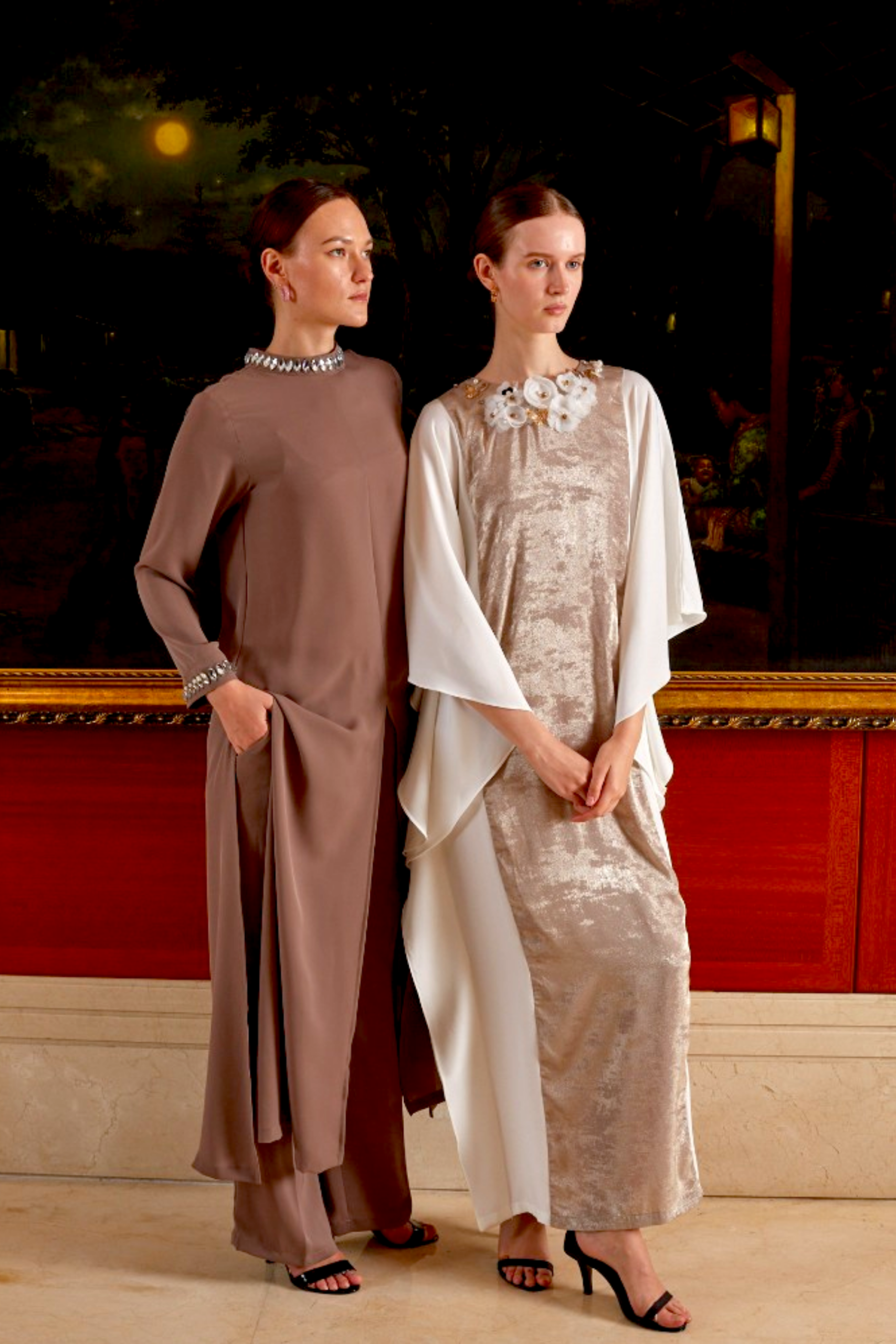A curation of flowing kaftans, sculptural evening silhouettes, and modest luxury crafted for Ramadan nights. Soft drapes, artisanal embellishments, and refined neutrals inspired by Gulf evenings and Indonesian heritage.
