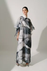 When it comes to luxury modest wear, the Demure Abstract Filcoupe Foliage Kaftan Dress stands